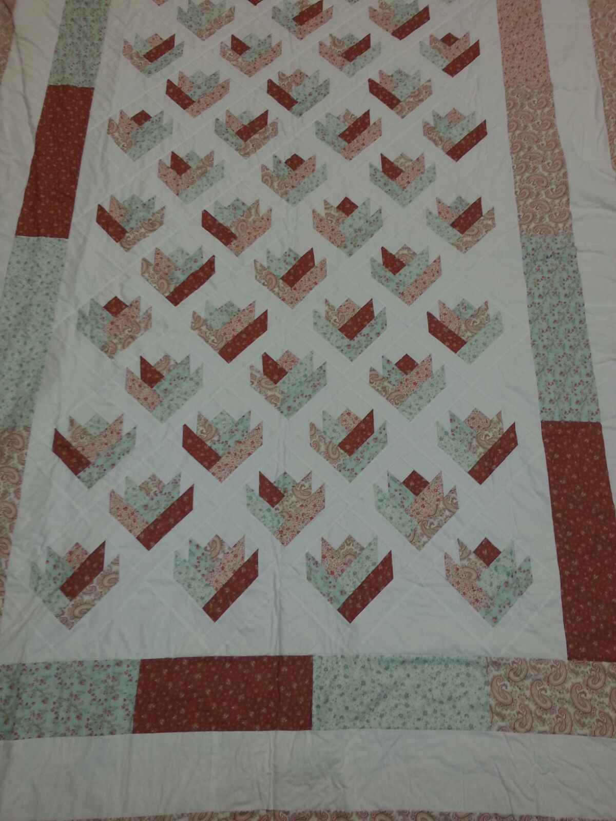 Lidia en tiempo record, aprovechando cada momento libre que tenía para sentare a coser. Está llena de detalles: sus iniciales en punto de cruz bordadas por ella y un pañuelo de bolillo que es una joya. El resultado ha sido ésta colcha que nos encanta.